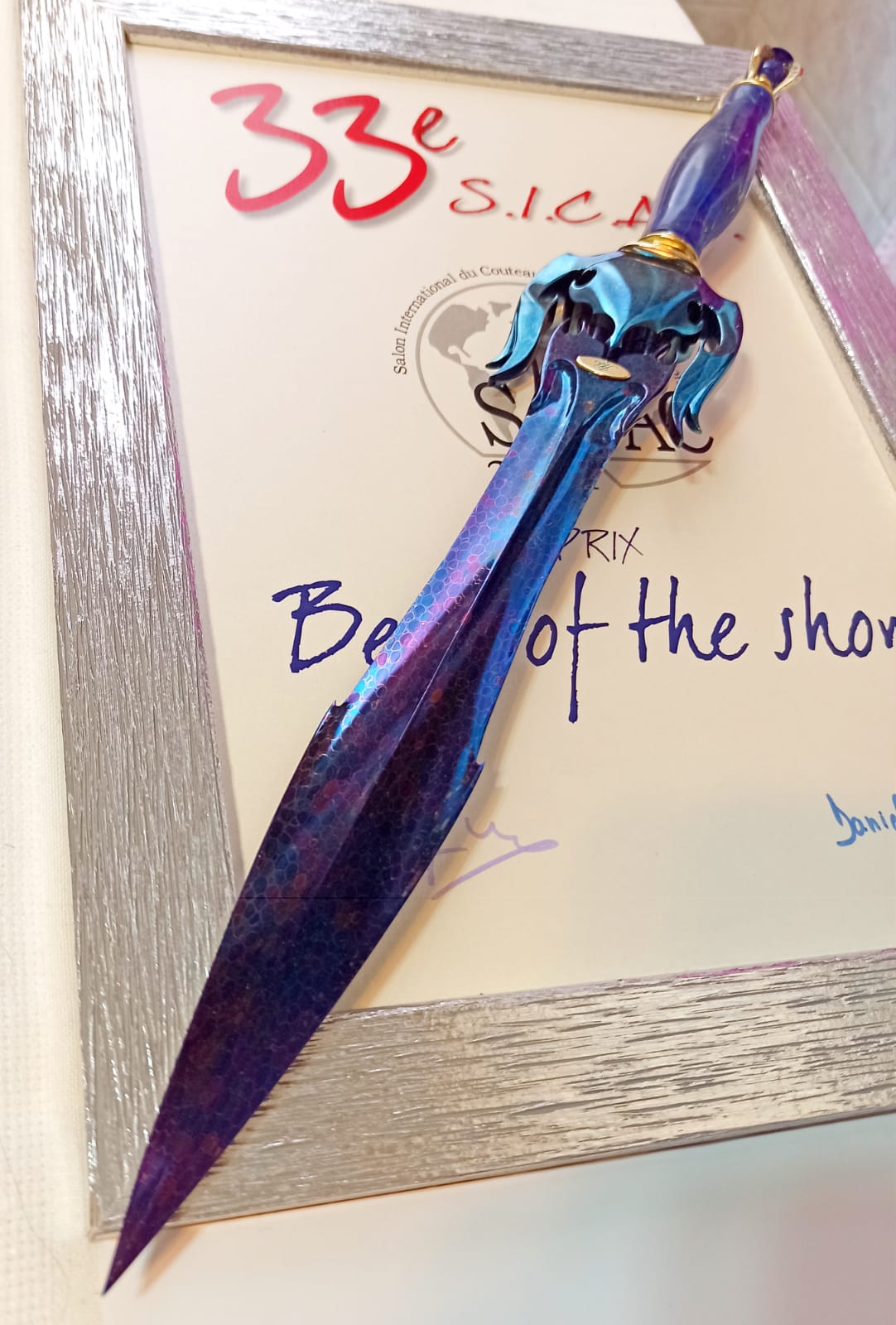 Sicac Paris Knife show 2022 – Our creation”Royal Blue”art dagger, won the prize for the best knife in the show for the 5th time in a row